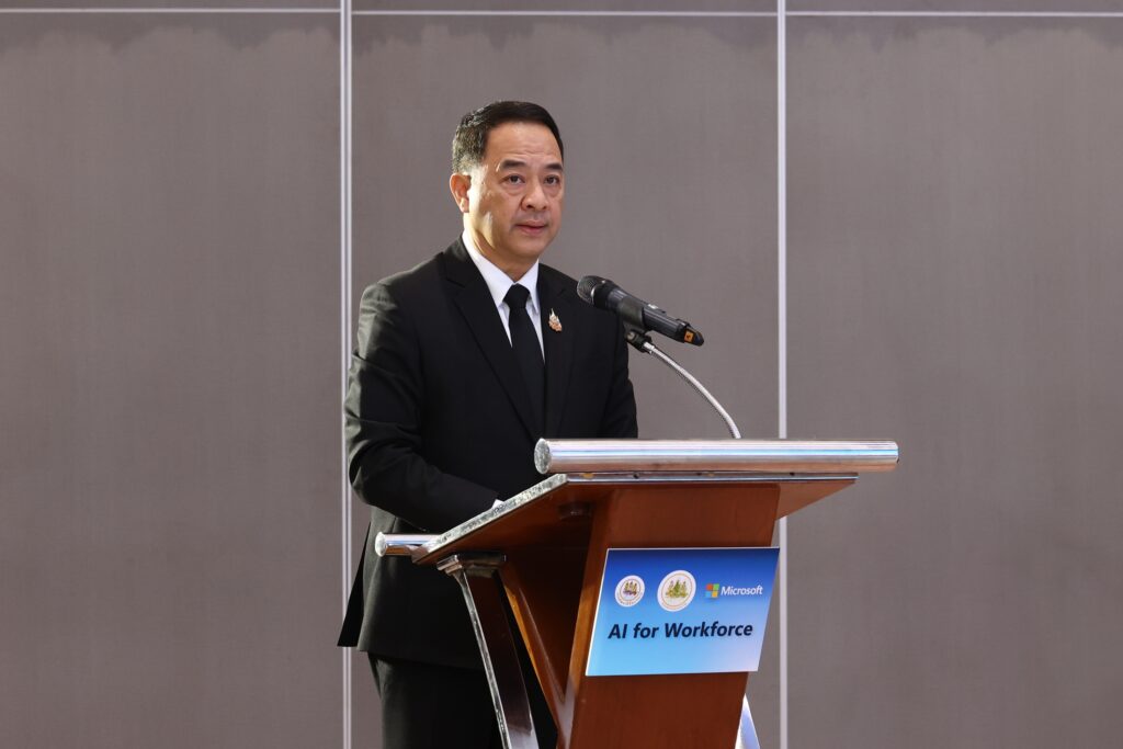 นางสาวตรีนุช เทียนทอง รัฐมนตรีว่าการกระทรวงแรงงาน กล่าวว่า “วันนี้ดิฉันรู้สึกยินดีและเป็นเกียรติอย่างยิ่งที่ได้มาเป็นประธานในงานแถลงข่าวความร่วมมือ AI for Workforce ระหว่างกรมพัฒนาฝีมือแรงงาน กับ บริษัท ไมโครซอฟท์ (ประเทศไทย) จำกัด ในยุคที่เศรษฐกิจโลกกำลังก้าวเข้าสู่การขับเคลื่อนด้วยดิจิทัลอย่างเต็มรูปแบบ เทคโนโลยีสมัยใหม่ ไม่ว่าจะเป็นปัญญาประดิษฐ์ (AI) คลาวด์ (Cloud) ดาต้า (Data) ความมั่นคงปลอดภัยไซเบอร์ (Cybersecurity) และระบบอัตโนมัติ (Automation) กำลังเปลี่ยนแปลงรูปแบบการทำงานของทุกภาคส่วนอย่างรวดเร็ว ประเทศไทยจำเป็นต้องเร่งพัฒนาคนของเราให้มีทักษะที่พร้อมต่อการเปลี่ยนแปลง เพื่อรักษาความสามารถในการแข่งขันและยกระดับคุณภาพชีวิตของแรงงานไทยทุกกลุ่ม การ Upskill – Reskill ให้แรงงานไทยก้าวทันการเปลี่ยนแปลงของเทคโนโลยีและเศรษฐกิจดิจิทัล จึงเป็นอีกหนึ่งนโยบายสำคัญของกระทรวงแรงงาน