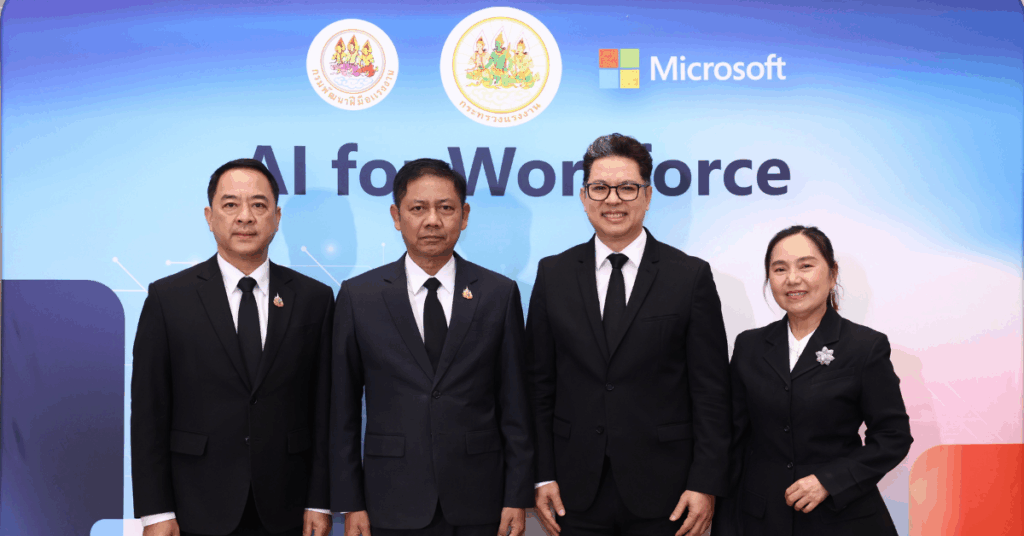 กรุงเทพฯ 25 พฤศจิกายน 2568 – ไมโครซอฟท์ ประเทศไทย และกระทรวงแรงงาน โดยกรมพัฒนาฝีมือแรงงาน ประกาศความร่วมมือครั้งสำคัญเพื่อเร่งสร้างแรงงานไทยที่มีความพร้อม เพิ่มศักยภาพการแข่งขันในยุคปัญญาประดิษฐ์ (AI) เดินหน้ามอบทักษะ AI และประกาศนียบัตรซึ่งเป็นที่ยอมรับในอุตสาหกรรมให้กับแรงงาน 150,000 คนทั่วประเทศ เพื่อสนับสนุนแผนพัฒนาเศรษฐกิจและสังคมแห่งชาติของประเทศไทย และขับเคลื่อนวิสัยทัศน์ของประเทศสู่ Workforce 5.0 ยกระดับประเทศไทยก้าวขึ้นเป็นผู้นำระดับภูมิภาคในด้านความพร้อมของกำลังแรงงานและนวัตกรรม AI สำหรับเศรษฐกิจ AI โดยผู้แทนจากภาคส่วนต่างๆ จะได้นำองค์ความรู้ที่ได้รับไปผลักดันการพัฒนาทักษะ AI ให้ครอบคลุมทุกมิติ ทั้งในระดับนโยบาย การเพิ่มพูนทักษะสำหรับแรงงานทุกกลุ่ม และการสร้างระบบนิเวศแห่งการเรียนรู้ที่ยั่งยืน