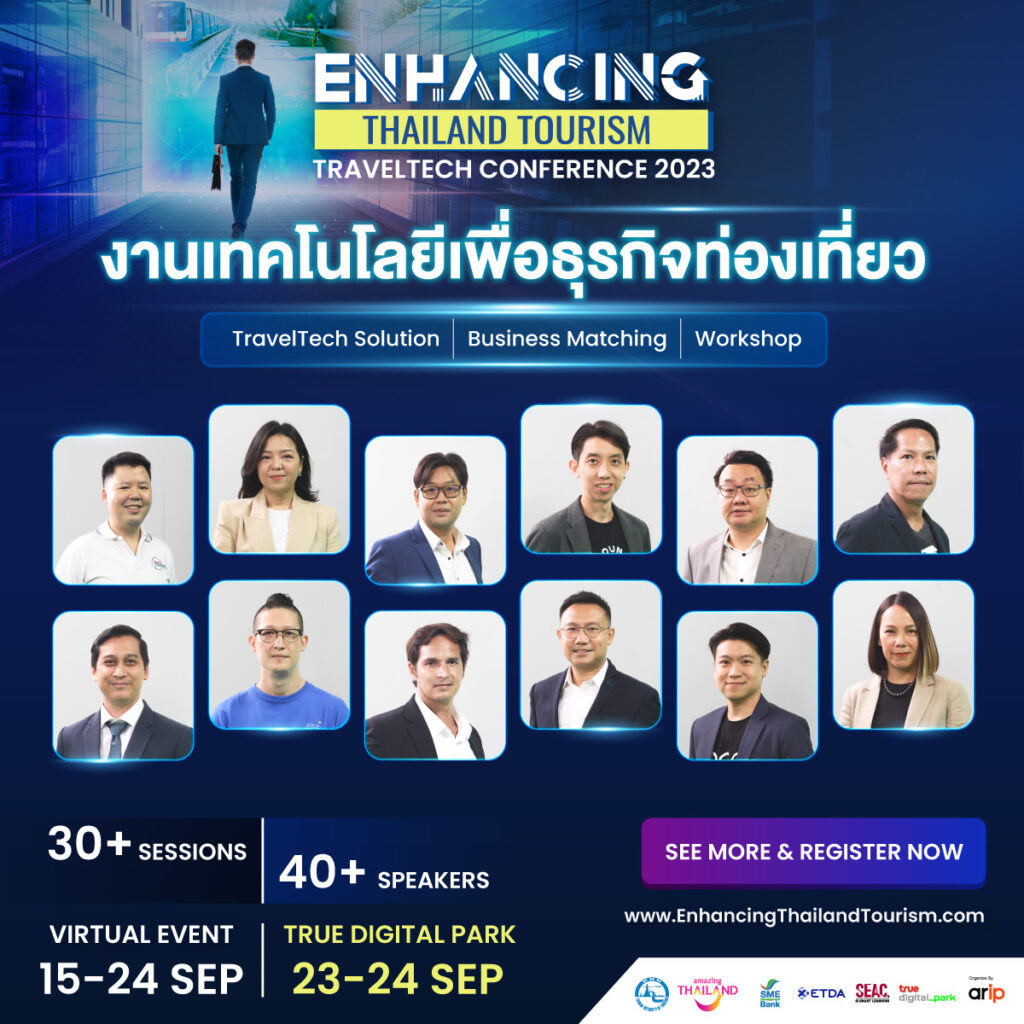 พร้อมกันนี้ งาน Enhancing Thailand Tourism 2023 จะจัดในรูปแบบ Hybrid Event ระหว่างวันที่ 15-24 กันยายน 2566 ทาง Virtual Platform ( www.enhancingthailandtourism.com ) และ วันที่ 23-24 กันยายน 2566 ณ ห้อง Grand Hall ชั้น 3 อาคาร True Digital Park โดยภายในงานพบกับการสัมมนาและเสวนาวิชาการที่รวมสุดยอดกูรู ยูทูบเบอร์ อินฟลูเอนเซอร์ มากประสบการณ์ด้านธุรกิจท่องเที่ยวและการตลาดดิจิทัล พร้อมเสริมสร้างความรู้ให้แก่ผู้ประกอบการท่องเที่ยวและผู้สนใจ รวมทั้งมีการออกบูธจากการท่องเที่ยวแห่งประเทศไทย ธนาคารพัฒนาวิสาหกิจขนาดกลางและขนาดย่อมแห่งประเทศไทย เครือข่ายพันธมิตร และสินค้านวัตกรรมจากผู้พัฒนาฯ ที่คัดสรรเทคโนโลยีดิจิทัลมาให้เหมาะกับธุรกิจท่องเที่ยว นอกจากนี้ยังมีงานจับคู่ทางธุรกิจ และกิจกรรมที่น่าสนใจมากมาย