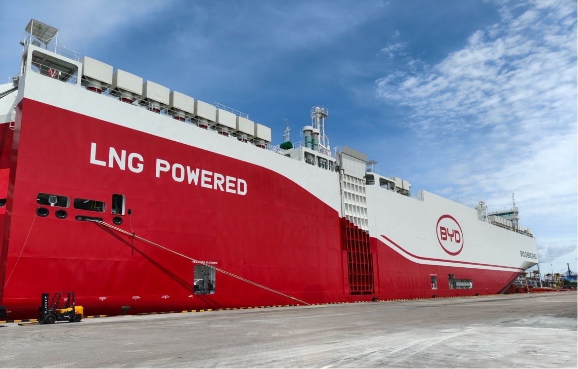 เรือ BYD Zhengzhou ซึ่งเป็นเรือขนส่งของ BYD เอง ได้บรรทุกรถยนต์ไฟฟ้ารุ่น Dolphin ซึ่งเป็นรุ่นพวงมาลัยซ้าย จำนวน 959 คัน ออกเดินทางจากท่าเรือในจังหวัดชลบุรี มุ่งหน้าสู่ตลาดยุโรปเป็นครั้งแรก โดยมีปลายทางที่เยอรมนี เบลเยียม และเนเธอร์แลนด์
