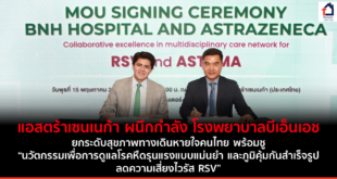 กรุงเทพฯ – บริษัท แอสตร้าเซนเนก้า (ประเทศไทย) จำกัด ร่วมกับ โรงพยาบาลบีเอ็นเอช (BNH) ลงนามกรอบความร่วมมือสู่เครือข่ายความเป็นเลิศเพื่อการดูแลรักษาโรคหืดครบวงจรโดยทีมสหวิชาชีพและยกระดับคุณภาพชีวิตเด็กไทยห่างไกลภัยร้ายจากไวรัส RSV หรือ “Collaborative excellence in multidisciplinary care network for RSV and Asthma” สร้างความรู้ความเข้าใจในไวรัส RSV และ โรคหืด พร้อมดูแลผู้ป่วยด้วยทีมแพทย์มืออาชีพอย่างครบวงจร อีกทั้งเดินหน้าพัฒนาองค์ความรู้ของบุคลากร แลกเปลี่ยนความรู้ในงานวิจัย โดยมีการพัฒนาความร่วมมือในการนำ “นวัตกรรมภูมิคุ้มกันสำเร็จรูปสำหรับโรค RSV” ที่เข้ามาช่วยลดความเสี่ยงจากการติดเชื้อไวรัส RSV และ “นวัตกรรมเพื่อการดูแลรักษาโรคหืดรุนแรงแบบแม่นยำเฉพาะบุคคล” ยกระดับการดูแลโรคระบบทางเดินหายใจให้ทันสมัยตามมาตรฐานสากล