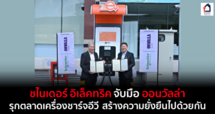 นายมงคล ตั้งศิริวิช (ขวา) ประธานกลุ่มคลัสเตอร์ ชไนเดอร์ อิเล็คทริค ดูแลประเทศไทย ลาว และเมียนมา และ นายองอาจ ปัณฑุยากร (ซ้าย) ประธานเจ้าหน้าที่บริหาร บริษัท ออนวัลล่า จำกัด ภายใต้การดูแลของบริษัท ออลล่า จำกัด (มหาชน) ได้ลงนามบันทึกข้อตกลงความร่วมมือ (MOU) โดยมีวัตถุประสงค์เพื่อร่วมกันพัฒนา และต่อยอดธุรกิจด้านสถานีชาร์จรถยนต์ไฟฟ้าอย่างครบวงจร มุ่งมั่นต่อยอดแนวคิดสร้างความยั่งยืนให้กับโลก ด้วยสถานีชาร์จรถยนต์ไฟฟ้าความเร็วสูง EVlink Pro DC ของชไนเดอร์ อิเล็คทริค ที่มีระบบ Ultra Fast Charge ให้ความรวดเร็วไม่ต้องรอนาน