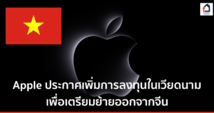 Read More »Apple ประกาศเพิ่มการลงทุนกับซัพพลายเออร์ในเวียดนาม เพื่อเตรียมตัวย้ายออกจากจีน