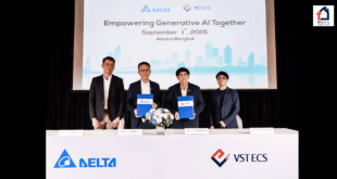 กรุงเทพฯ ประเทศไทย – 3 กันยายน พ.ศ. 2568 – บริษัท เดลต้า อีเลคโทรนิคส์ (ประเทศไทย) จำกัด (มหาชน) ผู้นำระดับโลกด้านการจัดการพลังงานและผู้ให้บริการโซลูชันสีเขียวอัจฉริยะ ประกาศความร่วมมืออย่างเป็นทางการกับบริษัท วีเอสที อีซีเอส (ประเทศไทย) จำกัด หนึ่งในผู้นำด้านการจัดจำหน่ายสินค้าไอทีของประเทศ ความร่วมมือนี้มีเป้าหมายเพื่อขยายตลาดระบบสำรองไฟ (UPS) รวมถึงโซลูชันโครงสร้างพื้นฐานดาต้าเซ็นเตอร์ของเดลต้าในระดับประเทศ โดยมุ่งเน้นกลุ่มลูกค้าองค์กรและภาครัฐ ทั้งนี้ พิธีลงนามจัดขึ้นที่โรงแรมอัมรา กรุงเทพฯ