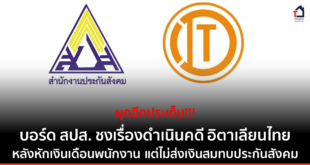 บอร์ดประกันสังคมยอมรับ มีรายงานข้อมูล บมจ.อิตาเลียนไทย ดีเวล๊อปเมนต์ ITD หักเงินเดือนพนักงานแต่ไม่ส่งเงินสมทบให้ประกันสังคม เล็งชงเรื่องกระทรวงแรงงานดำเนินการเอาผิดตามกฎหมาย