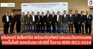 นายมงคล ตั้งศิริวิช ประธานกลุ่มคลัสเตอร์ ชไนเดอร์ อิเล็คทริค ดูแลประเทศไทย ลาว เมียนมา (ที่ 2 จากซ้าย) จัดทัพโซลูชั่นสำหรับสมาร์ทซิตี้ ช่วยไทยเติมเต็มเมืองอัจฉริยะในงานประชุมวิชาการและนิทรรศการนานาชาติด้านสมาร์ทซิตี้ระดับโลก “10th IEEE International Smart Cities Conference (IEEE-ISC2- 2024)” ภายใต้หัวข้อ “เมืองอัจฉริยะ: การปฏิวัติเพื่อมนุษยชาติ” (Smart Cities : Revolution for Mankind) ที่กำลังจะมีขึ้นในวันที่ 29 ตุลาคม 2567 ถึง 1 พฤศจิกายน 2567ณ โรงแรมรอยัล คลิฟ แกรนด์ เมืองพัทยา จังหวัดชลบุรีด้วยเทคโนโลยีการบริหารจัดการพลังงาน และระบบอัตโนมัติ พร้อมช่วยเมืองลดการปล่อยก๊าซเรือนกระจก อันเป็นไฮไลท์ของโซลูชั่นชไนเดอร์ อิเล็คทริค ด้านความเป็นผู้นำด้านความยั่งยืน ชไนเดอร์ อิเล็คทริค …