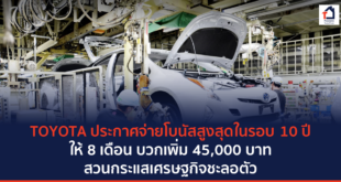 Read More »Toyota ประกาศจ่ายโบนัสสูงสุดในรอบ 10 ปี ให้ 8 เดือน บวกเพิ่ม 45,000 บาท สวนกระแสเศรษฐกิจชะลอตัว