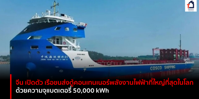 COSCO Shipping ซึ่งเป็นบริษัทของรัฐบาลจีน ได้เปิดตัวเรือขนส่งตู้คอนเทนเนอร์พลังงานไฟฟ้าจากแม่น้ำสู่ทะเลที่ใหญ่ที่สุดเท่าที่เคยมีมาในชื่อ Green Water 01 เรือที่น่าประทับใจลำนี้มีน้ำหนักมากกว่า 10,000 ตัน เป็นผู้เปลี่ยนเกมสำหรับพลังงานสะอาดด้านการขนส่ง Green Water 01 มีความยาว 119.8 เมตร กว้าง 23.6 เมตร และลึก 9 เมตร มีประวัติทางอุตสาหกรรมที่หลากหลาย รวมถึงขนาด ความจุของตู้คอนเทนเนอร์ น้ำหนักบรรทุก (มากกว่า 10,000 ตัน) และความจุของแบตเตอรี่ซึ่งเกินกว่า 50,000 กิโลวัตต์ชั่วโมง ขับเคลื่อนด้วยแบตเตอรี่ขนาดใหญ่ เรือสามารถปรับการใช้พลังงานตามระยะเวลาการเดินทาง COSCO สามารถเพิ่มโมดูลแบตเตอรี่เพิ่มเติมได้ โดยแต่ละโมดูลให้พลังงานไฟฟ้า 1,600 กิโลวัตต์ชั่วโมง เพื่อขยายระยะการเดินเรือของเรือ ตัวอย่างเช่น เมื่อติดตั้งกล่องแบตเตอรี่ 24 กล่อง Green Water 01 ก็สามารถเดินทางได้สำเร็จโดยใช้พลังงาน 80,000 kWh ซึ่งเทียบเท่ากับการประหยัดเชื้อเพลิงประมาณ 15 ตันที่เรือคอนเทนเนอร์ทั่วไปใช้สำหรับการเดินทางที่คล้ายกัน กัปตันเรือ … Continue reading จีนเปิดตัวเรือขนส่งตู้คอนเทนเนอร์พลังงานไฟฟ้าเต็มรูปแบบที่ใหญ่ที่สุดในโลก ด้วยความจุแบตเตอรี่ 50,000 kWh