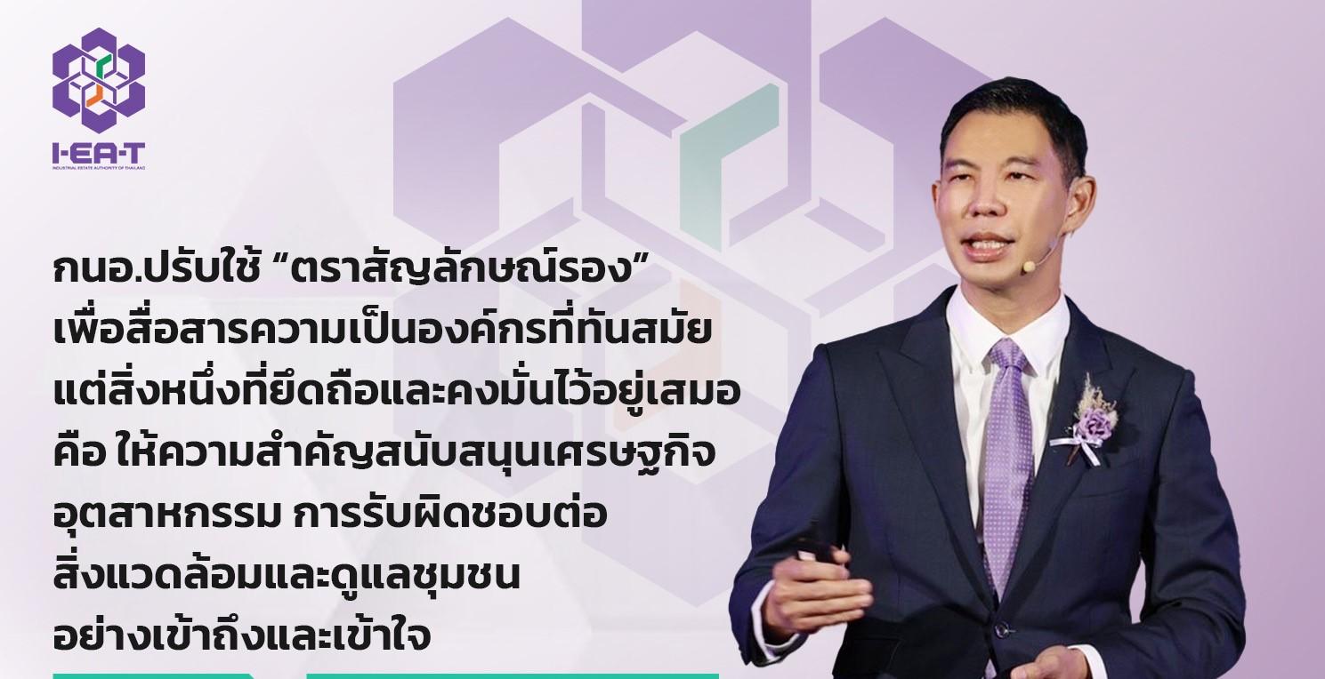 นายวีริศ อัมระปาล ผู้ว่าการ กนอ. กล่าวว่า เพื่อยกระดับให้ภาคอุตสาหกรรมของไทยสามารถก้าวต่อไปได้อย่างยั่งยืนในอนาคต กนอ. ในฐานะองค์กรที่ทำหน้าที่ผลักดันภาคอุตสาหกรรมของไทยให้เติบโตมาตลอดกึ่งศตวรรษที่ผ่านมา เราจำเป็นต้องเร่งปรับตัวและเพิ่มสมรรถนะของตนเองให้เข้มแข็ง เพื่อก้าวให้ทันกับกระแสความเปลี่ยนแปลงทางอุตสาหกรรมของโลกได้อย่างทันท่วงที นำพาภาคีเครือข่ายและผู้ประกอบการธุรกิจอุตสาหกรรมต่างๆ ของไทยให้ก้าวเข้าสู่สากลอย่างยั่งยืนไปด้วยกัน กนอ. จึงปรับแนวคิดและวิธีการทำงาน ปรับโฉมการให้บริการ รวมถึงภาพลักษณ์องค์กร เพื่อให้มีความทันสมัยและเป็นสากลยิ่งขึ้น โดย กนอ. ร่วมกับคณะที่ปรึกษาจากมหาวิทยาลัยเกษตรศาสตร์ ศึกษาการปรับภาพลักษณ์ของ กนอ.  พร้อมกับออกแบบ “ตราสัญลักษณ์รอง” อย่างเป็นทางการ เพื่อใช้ในการสื่อสาร และงานประชาสัมพันธ์ของ กนอ. ในระดับชาติ และนานาชาติ