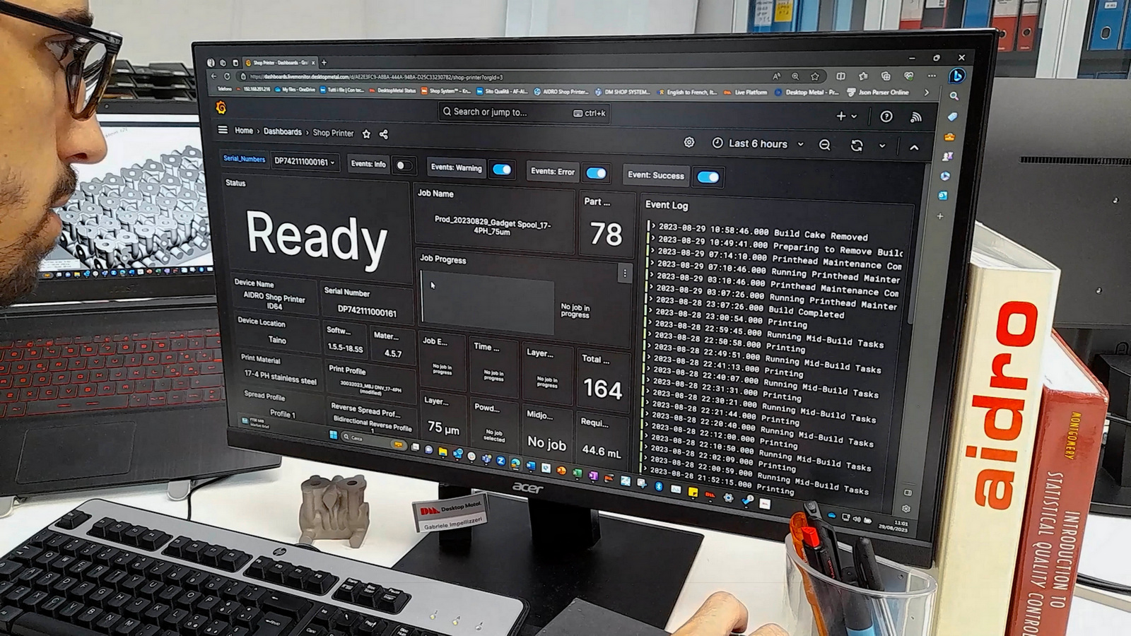สำหรับ Aidro ซึ่งเป็นบริษัทที่มีฐานอยู่ในอิตาลี เป็นผู้บุกเบิกการผลิตเชิงปริมาณทางด้านระบบกำลังไฮดรอลิกและของไหลสำหรับยุคต่อไป ตลอดจนโลหะที่ผลิตแบบ AM และเทคโนโลยีการผลิตแบบดั้งเดิม มาเป็นผู้ทดสอบ Live Monitor รุ่นเบต้า ที่ใช้สำหรับแพลตฟอร์มการพิมพ์ Shop System และเตาหลอมของ Desktop Metal ในปีที่ผ่านมา