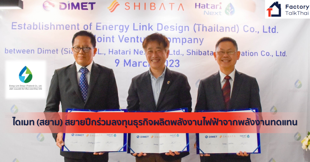 ไดเมท (สยาม) สบช่องธุรกิจกระแสพลังงานสะอาด จัดตั้งบริษัทร่วมทุน (Joint Venture) บริษัท เอนเนอร์ยี่ ลิงค์ ดีไซน์ (ประเทศไทย) จำกัด ออกแบบระบบผลิตพลังงานไฟฟ้าจากแสงอาทิตย์ จับมือสองพาร์ตเนอร์สัญชาติญี่ปุ่นและไทย ตั้งเป้ารับรู้รายได้ไตรมาสสี่