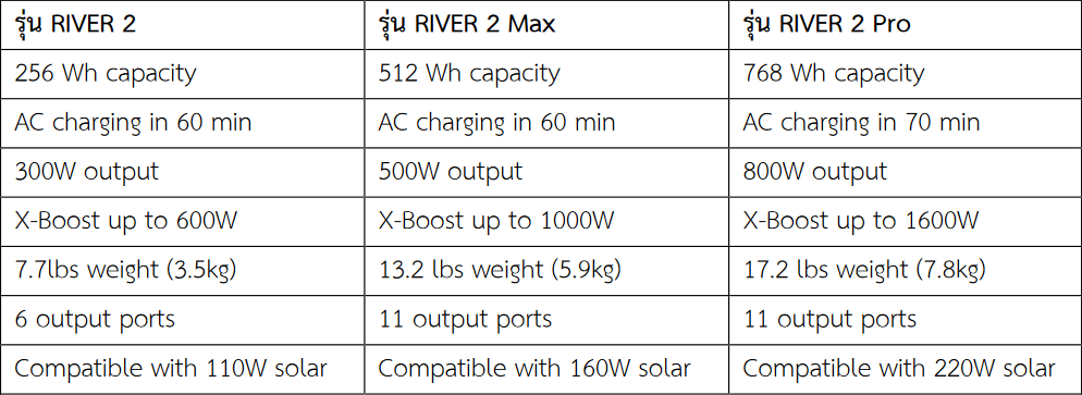 เปรียบเทียบ NEW RIVER 2 Series รุ่นต่าง ๆ