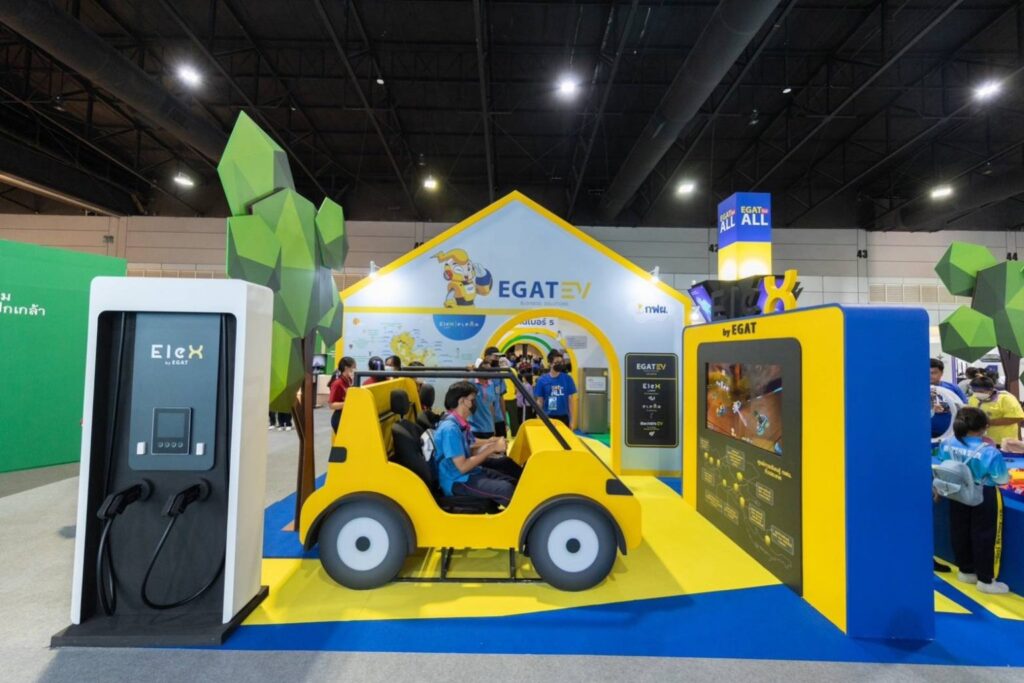 โซนที่ 4 : EV Station สร้างความมั่นใจรองรับทุกการเดินทางของผู้ใช้ยานยนต์ไฟฟ้าด้วยสถานีชาร์จ EleX by EGAT รวม 130 สถานีทั่วประเทศ เพียงใช้บริการผ่านแอปพลิเคชัน EleXA พร้อมร่วมสนุกเกมขับรถ EV เที่ยวศูนย์การเรียนรู้ กฟผ. 8 แห่ง ทั่วประเทศ
