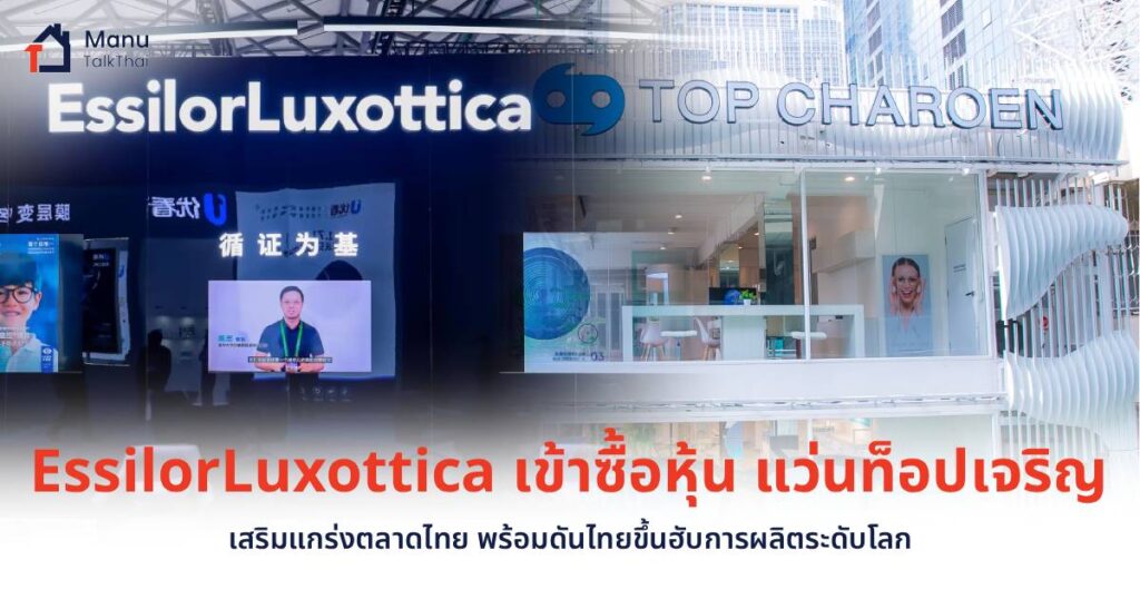 EssilorLuxottica ผู้นำด้านอุตสาหกรรมแว่นตาและผลิตภัณฑ์ดูแลสายตาระดับโลก ประกาศปิดดีลเข้าซื้อหุ้นของแว่นท็อปเจริญ หรือ บริษัท ร่วมเจริญพัฒนา จำกัด (มหาชน) เชนร้านแว่นตาที่ใหญ่ที่สุดในประเทศไทยที่มีสาขามากกว่า 2,000 แห่งทั่วประเทศ การเข้าซื้อหุ้นครั้งนี้ไม่เพียงแต่ตอกย้ำความสัมพันธ์อันยาวนานระหว่างสองบริษัท แต่ยังมีนัยสำคัญต่อภาคการผลิตและยุทธศาสตร์ทางธุรกิจในระดับภูมิภาค