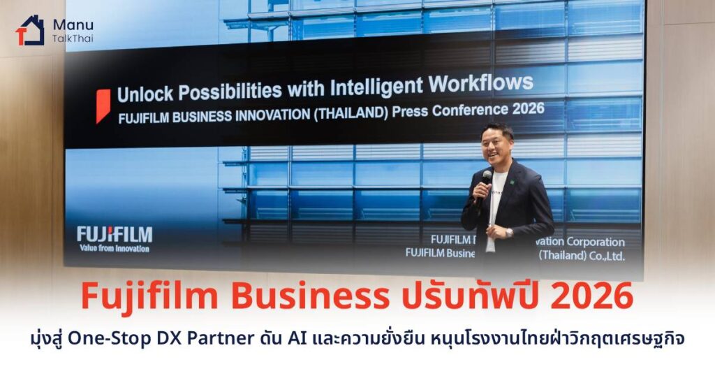 ในยุคที่ภาคการผลิตและอุตสาหกรรมไทยกำลังเผชิญกับความท้าทายรอบด้าน ทั้งภาวะเศรษฐกิจที่เติบโตช้า และความผันผวนของต้นทุน การปรับตัวด้วยเทคโนโลยีดิจิทัลจึงจำเป็น ฟูจิฟิล์ม บิสซิเนส อินโนเวชั่น (ประเทศไทย) จึงประกาศแผนปี 2026 ที่รีแบรนด์จุดยืนจากผู้จำหน่ายเครื่องพิมพ์ สู่ One-Stop DX Partner เพื่อช่วยยกระดับ Workflow ของภาคธุรกิจและโรงงานอุตสาหกรรมให้เติบโตได้อย่างยั่งยืน