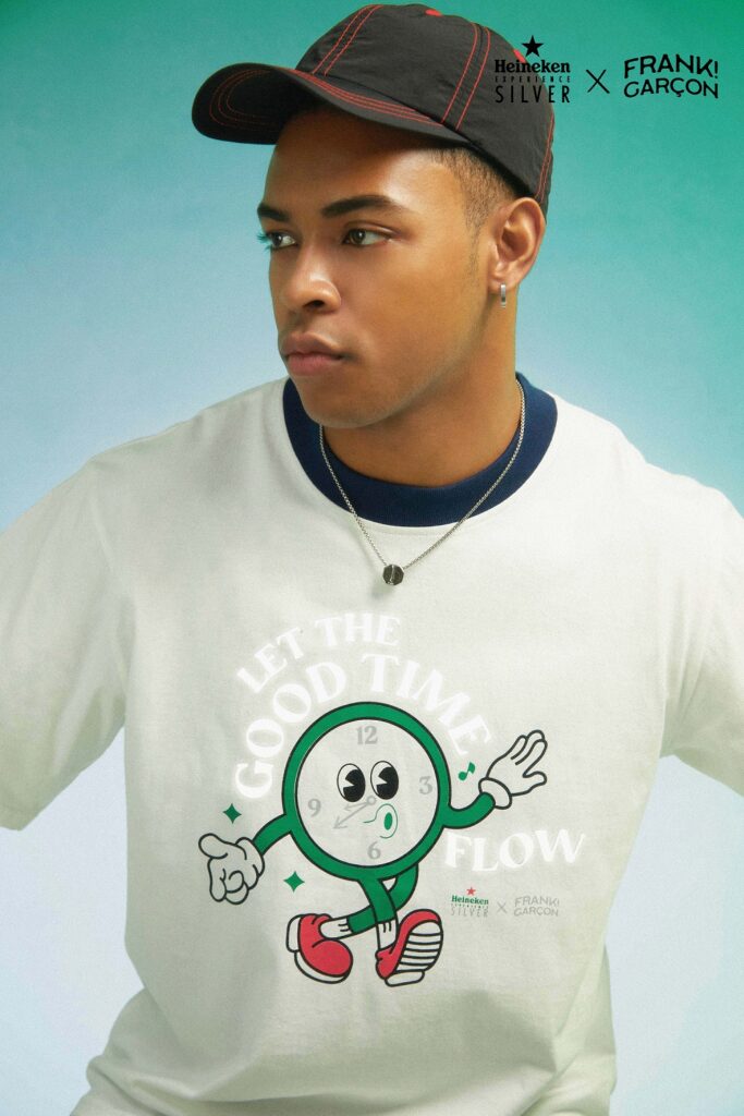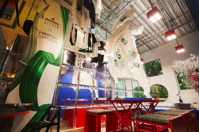 อีกหนึ่งความพิเศษของการเทคโอเวอร์คาเฟ่ในครั้งนี้ ถือเป็นครั้งแรกในการโชว์เคสแฟชั่นไลฟ์สไตล์คอลเลคชั่นระหว่าง Heineken Experience Silver ร่วมกับ “FRANK! GARCON” ออกแบบผ่านคอนเซ็ปต์ “Let it Flow, Let it Glow” โชว์ 13 แฟชั่นไลฟ์สไตล์ไอเท็ม ที่ผสานแนวคิดการปล่อยไหลและการใช้ชีวิตให้สนุกแบบสร้างสรรค์ ออกมาเป็นลวดลายกราฟิกดีไซน์ที่โดดเด่น ให้คนรุ่นใหม่ได้สัมผัสประสบการณ์ที่ปล่อยไหลและสมูทกันได้เกินคาด กับออลอินวันไอเท็มที่สามารถสวมใส่ได้หลายแบบหลายโอกาส เช่น กางเกงขายาวที่สามารถเปลี่ยนเป็นกางเกงขาสั้นได้เพียงรูดซิป เสื้อครอปที่สวมใส่ได้และพลิกแพลงเป็นกระเป๋า Tote Bag นอกจากนี้ยังมีการนำเทคนิคสกรีนด้วย Reflective Flex สะท้อนแสง เพิ่มกิมมิคให้แฟชั่นไลฟ์สไตล์เป็นเรื่องที่สนุกและสร้างความโดดเด่นให้กับผู้สวมใส่ได้เป็นอย่างดี รวมถึงให้ความ Glow และเฉิดฉายต่อได้ในปาร์ตี้ยามค่ำคืน โดยสินค้าเริ่มวางจำหน่ายตั้งแต่วันนี้เป็นต้นไป ที่ร้าน FRANK! GARCON สาขาสยามเซ็นเตอร์และสยามสแควร์ และวางจำหน่ายที่ร้าน FLAREOUT ตั้งแต่วันนี้ ถึง 31 ตุลาคม 2566