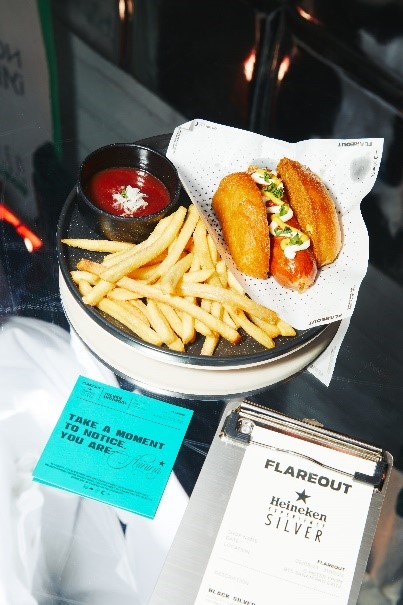 นอกจากนี้ Heineken Experience Silver x FLAREOUT ยังครีเอทโมเมนต์ “Silver Day and Night” ชูความโดดเด่นของคาเฟ่ที่ผสานแนวคิดของแบรนด์ออกมาเป็น 3 เมนูซิกเนเจอร์ ประกอบไปด้วย เมนูแรก “Silver Bunwich” บันชาโคลไส้ไอศกรีมมัทฉะออนท็อปด้วยครีมและเชอรี่ ต่อด้วย “Sausage Bunwich” ที่เสิร์ฟพร้อมไส้กรอกรมควันไส้พิซซ่าชีสและเฟรนช์ฟราย และตบท้ายด้วยกาแฟสุดยูนีคอย่าง “Black Silver” พร้อมให้เหล่าคาเฟ่ฮอปเปอร์มาเช็คอิน แชะภาพ ชิมเมนูพิเศษ และแชร์โมเมนต์ต่างๆ ลงโซเชียลมีเดียกันได้เต็มที่