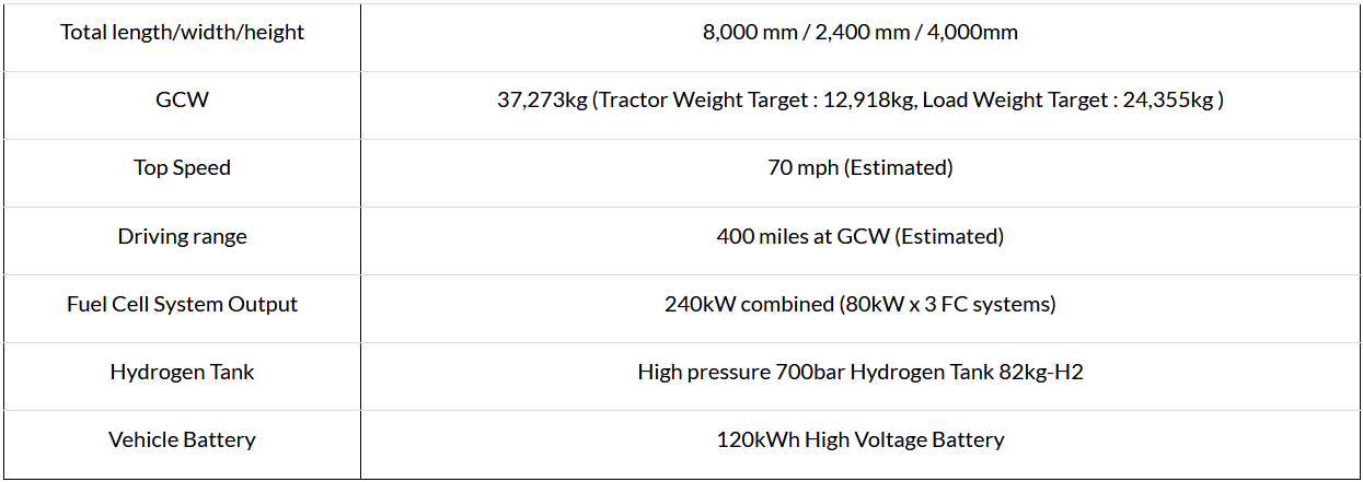 ข้อมูลจำเพาะเกี่ยวกับแนวคิดรถบรรทุกเซลล์เชื้อเพลิงไฮโดรเจนคลาส 8