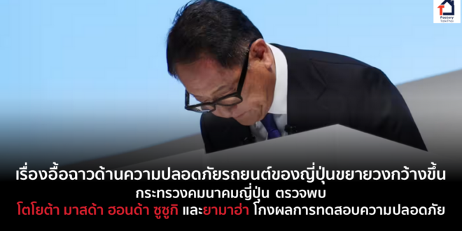 กระทรวงคมนาคมญี่ปุ่น ตรวจพบว่า ผู้ผลิตรถยนต์ส่งข้อมูลการทดสอบที่ไม่ถูกต้องหรือถูกดัดแปลงเมื่อยื่นขอการรับรองยานพาหนะเกี่ยวกับการทดสอบความปลอดภัย ซึ่งมีรายชื่อทั้ง 5 แบรนด์ดังอยู่ในนั่นด้วย นั่นก็คือ โตโยต้า มาสด้า ฮอนด้า ซูซูกิ และยามาฮ่า เรื่องอื้อฉาวเกี่ยวกับการทดสอบความปลอดภัยของบริษัทผู้ผลิตรถยนต์ญี่ปุ่นขยายวงกว้างขึ้นมากกว่าขึ้น เมื่อกระทรวงคมนาคมญี่ปุ่น รายงานรายชื่อผู้ผลิตเพิ่มเติม โตโยต้า และมาสด้า ประกาศระงับการจัดส่งรถยนต์บางรุ่นที่กระทรวงคมนาคมญี่ปุ่น พบความผิดปกติในการขอรับรองรถยนต์ ฮอนด้า ซูซูกิ และ ยามาฮ่ามอเตอร์ กระทรวงคมนาคมญี่ปุ่น พบว่าผู้ผลิตรถยนต์ส่งข้อมูลการทดสอบที่ไม่ถูกต้องหรือถูกดัดแปลงเมื่อยื่นขอการรับรองยานพาหนะ กระทรวงฯ สั่งให้โตโยต้า มาสด้า และยามาฮ่า ระงับการจัดส่งรถยนต์บางรุ่น โดยระบุว่าจะดำเนินการตรวจสอบในสถานที่ที่สำนักงานใหญ่กลางจังหวัดไอจิของโตโยต้า โตโยดะ หลานชายของผู้ก่อตั้งบริษัทผู้ผลิตรถยนต์และอดีตผู้บริหารระดับสูงของบริษัท กล่าวในงานแถลงข่าว ยอมรับผิดและขออภัยอย่างจริงใจต่อลูกค้าโตโยต้า โตโยต้า ยังออกมาเปิดเผยข้อมูลยานพาหนะที่ได้รับผลกระทบจากการผลิต 3 รุ่น ได้แก่ Corolla Fielder, Corolla Axio และ Yaris Cross และรุ่นที่ได้รับความนิยม 4 รุ่นถูกยกเลิก รวมถึงรุ่นที่จำหน่ายภายใต้แบรนด์ Lexus Luxury ด้วย ที่มา … Continue reading เรื่องอื้อฉาวด้านความปลอดภัยรถยนต์ของญี่ปุ่นขยายวงกว้างขึ้น กระทรวงคมนาคมญี่ปุ่น ตรวจพบ โตโยต้า มาสด้า ฮอนด้า ซูซูกิ และยามาฮ่า โกงผลการทดสอบความปลอดภัย