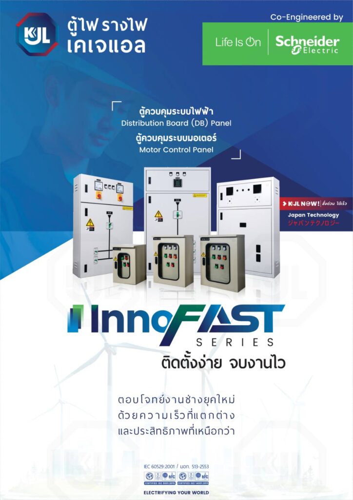 บริษัท กิจเจริญ เอ็นจิเนียริ่ง อีเลคทริค จำกัด (มหาชน) หรือ KJL ผู้ผลิตและจัดจำหน่ายอุปกรณ์ระบบไฟฟ้าชั้นนำของประเทศไทย ประกาศเปิดตัวผลิตภัณฑ์ใหม่ล่าสุด “InnoFAST series” ภายใต้แนวคิด ติดตั้งง่าย จบงานไว มุ่งตอบโจทย์งานช่างยุคใหม่ที่ต้องการความรวดเร็ว ประสิทธิภาพ และความปลอดภัยที่ได้มาตรฐาน InnoFAST series โดดเด่นด้วยการเป็น ตู้พร้อมบริการวายริ่ง (เดินสาย) และอุปกรณ์ภายในครบชุด ทำให้งานติดตั้งสะดวก รวดเร็ว ลดขั้นตอนการทำงาน และเพิ่มความมั่นใจด้านคุณภาพแก่ผู้ใช้งาน นอกจากนี้ KJL ยังได้รับความร่วมมือ (Co-Engineered) จากพันธมิตรที่แข็งแกร่งอย่าง Schneider Electric ในการพัฒนาผลิตภัณฑ์ร่วมกัน เพื่อส่งมอบคุณภาพที่ได้มาตรฐานสากลและยกระดับวงการติดตั้งระบบไฟฟ้าในประเทศไทย