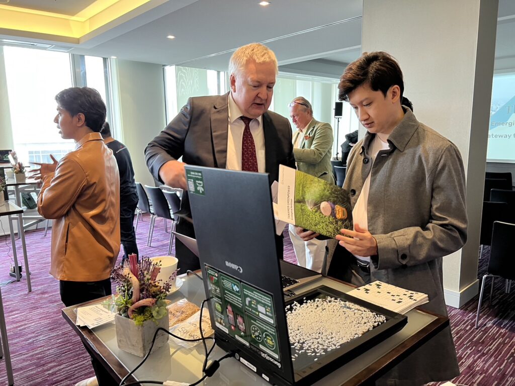 ในงาน AsiaBerlin Summit 2023 นอกจากจัดประชุมแลกเปลี่ยนองค์ความรู้และแนวโน้มเทคโนโลยีล่าสุด แล้ว ยังเปิดเวทีการแข่งขัน Startup Pitch ที่จะแลกเปลี่ยนให้ข้อมูลเชิงลึกใหม่ๆ จากประเทศในเอเชียและเบอร์ลินด้วย โดยกำหนดไว้ 3 หัวข้อ ได้แก่1) Mobility & Logistics 2).Energy Transition & Green Tech และ 3).Artificial Intelligence (AI) ซึ่ง Startups จากเยอรมนีและเอเชียจะมีเวลา 5 นาที ในการเสนอไอเดียและรับข้อเสนอแนะจากสมาชิกคณะกรรมการตัดสินที่มีชื่อเสียง ทั้งนี้ 10 สตาร์ทอัพไทย ที่ร่วมออกบูธแสดงนวัตกรรมในเวทีโลกครั้งนี้ ได้แก่ 1. นวัตกรรม ‘เอ้กอีเอ้ก’ (Egg E Egg)โดยสตาร์ทอัพ บริษัท คอนโซลูเทค เป็นระบบ AI ตรวจคุณภาพไข่ก่อนเข้าสู่กระบวนการฟักและในกระบวนการฟัก ซึ่งส่งเสริมยกระดับอุตสาหกรรมไก่ไข่ ฟาร์มโรงฟัก และไข่ไก่ ที่มีมูลค่าทางเศรษฐกิจปีละกว่า 33,000 ล้านบาท 2.นวัตกรรม ‘มีล็อก’ (MeLog) โดยสตาร์ทอัพ บริษัท MELOG แอปพลิเคชั่น-แพลตฟอร์มโลจิสติกส์และรถขนส่งครบวงจร ตั้งแต่ช่วยคำนวณต้นทุน-เวลา ค้นหาซัพพลายเชน ติดตามการทำงานของรถ ระบบเตือนความปลอดภัย จนถึงการบำรุงรักษา 3.นวัตกรรม EasyRice ระบบ AI ตรวจสอบสายพันธุ์ข้าวเปลือก และระบบ AI ตรวจสอบตรวจสอบคุณภาพข้าว โดยสตาร์ทอัพ บริษัท อีซีไรช์ ดิจิทัล เทคโนโลยี 4.Botnoi การสื่อสารสตรีมไลน์ระบบเอ.ไอ. 5.Dynamic Intelligence ระบบเอ.ไอเพื่อคุณภาพชีวิตที่ดีขึ้น 6.Eden Agritech นวัตกรรมยืดอายุผัก-ผลไม้ส่งออก 7.Biom จุลินทรีย์ชีวภาพเร่งการเติบโตของพืช 8.Thai Ento Food ผงโปรตีนจากจิ้งหรีดเพื่อสุขภาพ 9.Ecorider นวัตกรรมป้องกันและยืดอายุจักรยานให้ยาวนาน 10.ETran ยานพาหนะมอเตอร์ไซค์ไฟฟ้าสำหรับสมาร์ทซิตี้ เป็นมิตรต่อสิ่งแวดล้อม