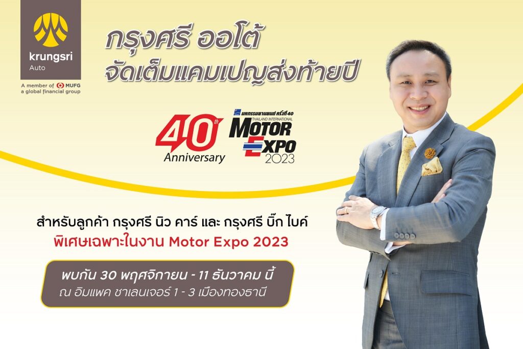นายพรเทพ ถิรสุนทรากุล ผู้ช่วยกรรมการผู้จัดการใหญ่ ผู้บริหารสายงานการตลาด ธุรกิจสินเชื่อยานยนต์ ธนาคารกรุงศรีอยุธยา จำกัด (มหาชน) กล่าวว่า “ถึงแม้ว่าภาพรวมของตลาดยานยนต์ในปีนี้จะมีการเติบโตที่ชะลอลง อย่างไรก็ตาม กรุงศรี ออโต้ ยังคงเดินหน้านำเสนอผลิตภัณฑ์และบริการที่ครอบคลุมความต้องการของผู้ใช้รถเพื่อครองตำแหน่งผู้นำตลาด ในช่วงเดือนสุดท้ายของปี เราเตรียมแคมเปญพิเศษส่งท้ายปีในงาน Motor Expo 2023 สำหรับลูกค้าสินเชื่อ ‘กรุงศรี นิว คาร์’ และ ‘กรุงศรี บิ๊ก ไบค์’ โดยคาดว่าจะเป็นตัวกระตุ้นยอดสินเชื่อใหม่ก่อนปิดปีให้กับ กรุงศรี ออโต้ ซึ่งเราตั้งเป้ายอดสินเชื่อใหม่ ทั้งรถยนต์และมอเตอร์ไซค์ ในงานครั้งนี้ ไว้ที่ 1,440 ล้านบาท”