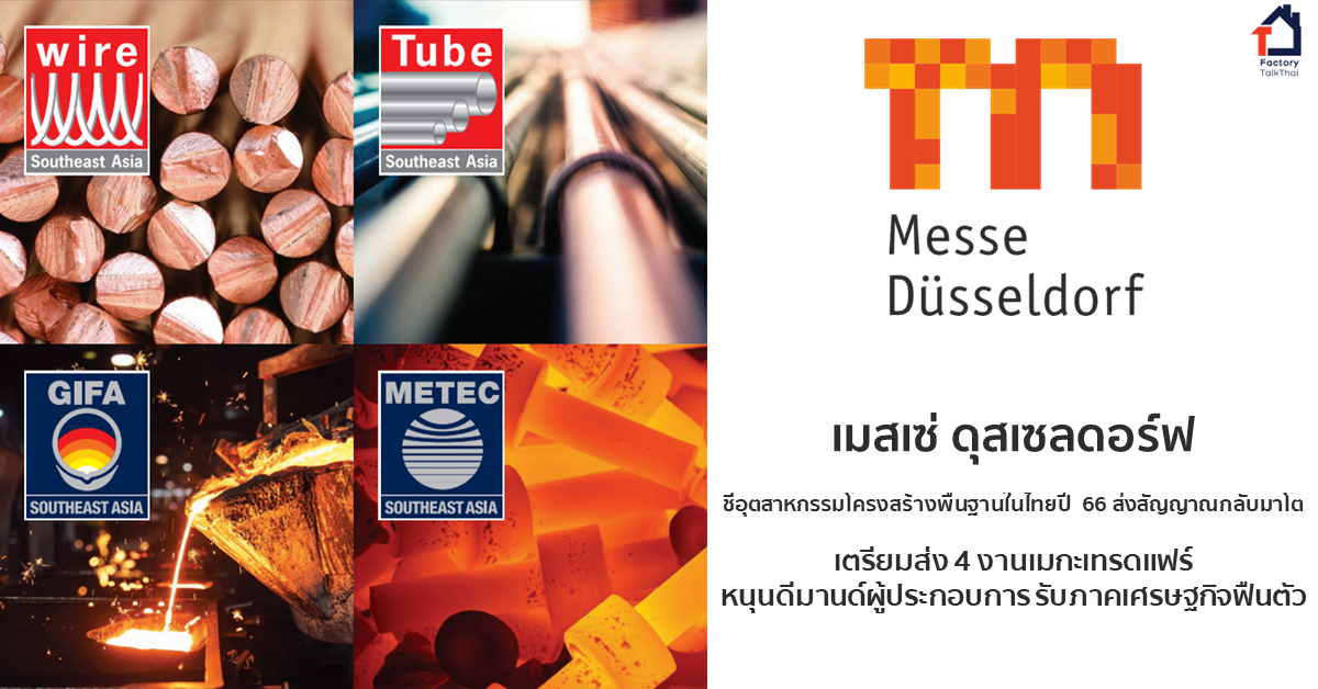 “จากปัจจัยบวกที่เป็นตัวกระตุ้นการเติบโตของกลุ่มอุตสาหกรรมโครงสร้างพื้นฐานในประเทศไทย ส่งผลให้อุปสงค์ของห่วงโซ่ของอุตสาหกรรม ไม่ว่าจะเป็น การผลิตลวด เคเบิล ท่อ ท่อร้อยสาย อุตสาหกรรมหล่อโลหะ และโลหะการ ตลอดจนเครื่องจักร เทคโนโลยีการหล่อ นวัตกรรม และการให้บริการด้านวิศวกรรมที่ทันสมัย มีความต้องการเพิ่มมากขึ้นตามไปด้วย ดังนั้น เมสเซ่ ดุสเซลดอร์ฟ เอเชีย ในฐานะผู้นําด้านการจัดประชุมและงานแสดงสินค้าระดับโลก เล็งเห็นถึงความต้องการใช้ทรัพยากรที่มีประสิทธิภาพเพื่อขับเคลื่อนโครงการต่าง ๆ ตลอดจนศักยภาพของประเทศไทยในฐานะฮับด้านการจัดงานแสดงสินค้าอันดับ 1 แห่งเอเชียตะวันออกเฉียงใต้ จึงได้เตรียมจัดงาน 4 งานมหกรรมแสดงสินค้าและนวัตกรรมครั้งใหญ่แห่งภูมิภาคอาเซียนในประเทศไทยอีกครั้ง ประกอบไปด้วย 1. งานแสดงสินค้านานาชาติด้านอุตสาหกรรมลวด เคเบิล ครั้งที่ 15 สําหรับเอเชียตะวันออกเฉียงใต้ (wire Southeast ASIA 2023) 2. งานแสดงสินค้านานาชาติด้านอุตสาหกรรมท่อและท่อร้อยสาย ครั้งที่ 14 สําหรับเอเชียตะวันออกเฉียงใต้ (Tube Southeast ASIA 2023) 3. งานแสดงสินค้าและฟอรั่มนานาชาติด้านการหล่อโลหะเพื่อภูมิภาคเอเชียตะวันออกเฉียงใต้ครั้งที่ 2 (GIFA Southeast Asia 2023) และ 4. งานแสดงสินค้าและฟอรั่มนานาชาติด้านโลหะวิทยาเพื่อภูมิภาคเอเชียตะวันออกเฉียงใต้ ครั้งที่ 2 (METEC Southeast Asia 2023)” เพื่อให้เกิดการกระตุ้นการตัดสินใจในการลงทุนในภาคอุตสาหกรรมที่เกี่ยวข้อง ซึ่งจะมาช่วยขับเคลื่อนภาคเศรษฐกิจให้มีการเติบโตต่อไป” มร.เกอร์นอท กล่าวทิ้งท้าย