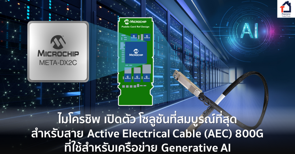 อลัน เวคเคิล ผู้ร่วมก่อตั้งและนักวิเคราะห์ของบริษัทวิจัยด้านการตลาด 650 Group กล่าวว่า “Generative AI ส่งผลอย่างมากต่อวิธีการสร้างโครงสร้างพื้นฐานของศูนย์ข้อมูล และปริมาณการเชื่อมต่อเครือข่ายที่จำเป็นต้องใช้ เพื่อแก้ไขปัญหานี้ heperscaler ต้องมีโซลูชันที่มีแบนด์วิธสูงอย่างมาก ซึ่งต้องใช้พลังงานต่ำและมีต้นทุนต่ำ เรากำลังอยู่ในช่วงเปลี่ยนผ่านและหันไปใช้สาย active electrical cable ซึ่งเป็นโซลูชันที่ดีที่สุดในการแก้ไขปัญหานี้ รีไทเมอร์ AEC META-DX2C 800G ของไมโครชิพมีความสามารถที่สอดคล้องกับแนวโน้มนี้ และเป็นโซลูชันที่ขาดไม่ได้ในการสร้างการเติบโตในงานสาขานี้”