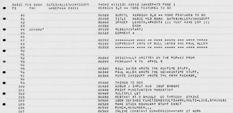 โค้ดโปรแกรม 8080 BASIC ที่เขียนขึ้นโดย Bill Gates และ Paul Allen มีความสำคัญอย่างยิ่งในฐานะซอฟต์แวร์ชิ้นแรกที่ถูกเสนอขายโดยบริษัท Micro-Soft (ชื่อในยุคก่อตั้ง) ที่ก่อตั้งโดย Bill Gates และ Paul Allen พวกเขาเขียนภาษาโปรแกรม BASIC นี้ขึ้นสำหรับเครื่องคอมพิวเตอร์ Altair 8800 ซึ่งใช้หน่วยประมวลผลกลาง (CPU) Intel 8080 โดยเฉพาะ การสร้างสรรค์ครั้งนี้ไม่เพียงแต่เป็นรากฐานของอาณาจักร Microsoft แต่ยังเป็นการบุกเบิกตลาดซอฟต์แวร์สำหรับคอมพิวเตอร์ส่วนบุคคลในยุคเริ่มต้นอย่างแท้จริง
