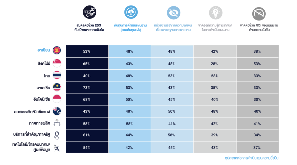 - องค์กรส่วนใหญ่มองว่า ความยั่งยืนไม่ใช่ปัญหาทางธุรกิจที่ท้าทายใน 5 อันดับแรก