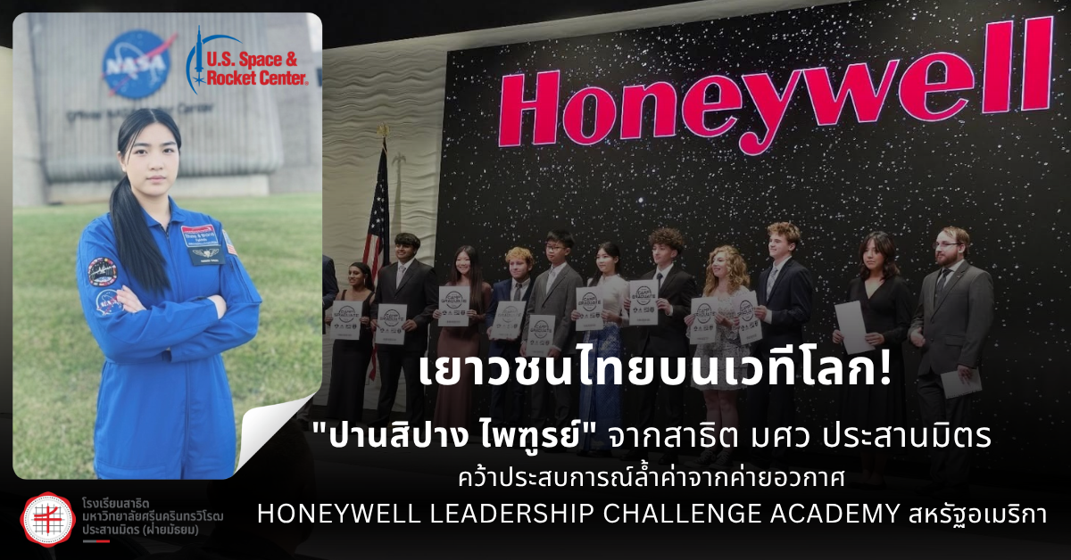 Huntsville, Alabama, USA – 10 ตุลาคม 2025 – บริษัท ฮันนี่เวลล์ (Honeywell) ผู้นำระดับโลกด้านเทคโนโลยีอุตสาหกรรม ประกาศความสำเร็จของ นางสาวปานสิปาง ไพฑูรย์ นักเรียนผู้มีความมุ่งมั่นจากประเทศไทย ที่ได้ผ่านการอบรมหลักสูตร Honeywell Leadership Challenge Academy (HLCA) ณ ศูนย์อวกาศและจรวดแห่งสหรัฐอเมริกา (U.S. Space and Rocket Center) ภายใต้การกำกับของ NASA