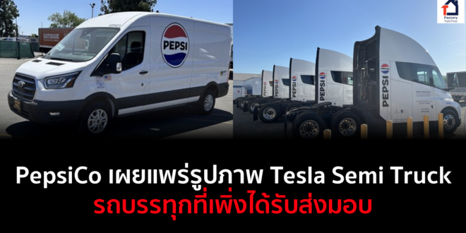 PepsiCo Beverages ประกาศการขยายกลุ่มยานพาหนะที่ขับเคลื่อนด้วยไฟฟ้า Tesla Semi Class 8 จำนวน 50 คัน และรถตู้ไฟฟ้า Ford E-Transit จำนวน 75 คัน การนำรถยนต์ไฟฟ้าไปใช้จะช่วยให้บริษัทก้าวหน้าไปสู่เป้าหมาย pep+ (PepsiCo Positive) ที่จะบรรลุการปล่อยก๊าซสุทธิเป็นศูนย์ภายในปี 2583 Tesla Semi Trucks ที่โรงงานผลิตขนาด 170,000 ตารางฟุตของ PepsiCo Beverages จะมีการติดตั้งเครื่องชาร์จ Tesla ขนาด 750 กิโลวัตต์จำนวน 8 เครื่อง และระบบจัดเก็บพลังงานแบตเตอรี่ Tesla Megapack จำนวน 2 เครื่อง Tesla Semi ใหม่ที่เพิ่งส่งมอบให้กับ PepsiCo Beverages จะดำเนินการขนส่งสินค้าหนักในการปฏิบัติงานในแต่ละวัน รวมถึงรถตู้ไฟฟ้า Ford E-Transit จำนวน 75 คันทั่วสำนักงานทั้ง … Continue reading PepsiCo เผยแพร่รูปภาพรถบรรทุก Tesla Semi และ Ford E-Transit ที่เพิ่งได้รับส่งมอบ