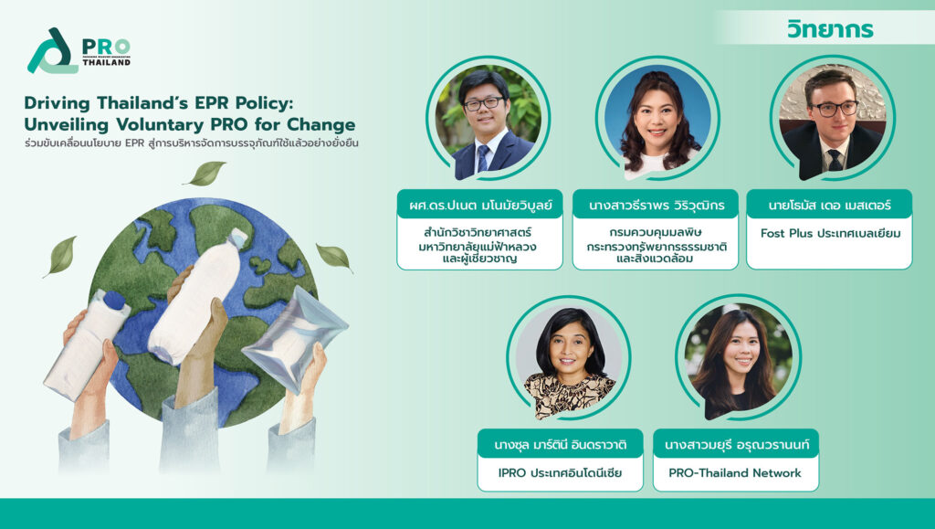 กรุงเทพฯ – 6 ธันวาคม 2566 – “PRO-Thailand Network” ร่วมภาครัฐ เอกชน ขับเคลื่อนนโยบาย EPR ในการบริหารจัดการบรรจุภัณฑ์ใช้แล้วให้เหมาะสมกับบริบทไทย และใช้ได้จริง โดยได้ระดมความคิดและแลกเปลี่ยนมุมมองการดำเนินการของ PRO ในยุโรปและอาเซียน ซึ่งประสบความสำเร็จในการจัดการบรรจุภัณฑ์ใช้แล้วเข้าสู่กระบวนการรีไซเคิลได้ตามเป้าหมาย พร้อมเชิญชวนผู้ประกอบการทุกภาคส่วนที่เกี่ยวข้องในห่วงโซ่บรรจุภัณฑ์ให้เข้ามาทำงานร่วมกัน เตรียมพร้อมรับ EPR เพื่อสร้างอนาคตเศรษฐกิจหมุนเวียนของประเทศไทยจากบรรจุภัณฑ์ใช้แล้วอย่างยั่งยืน