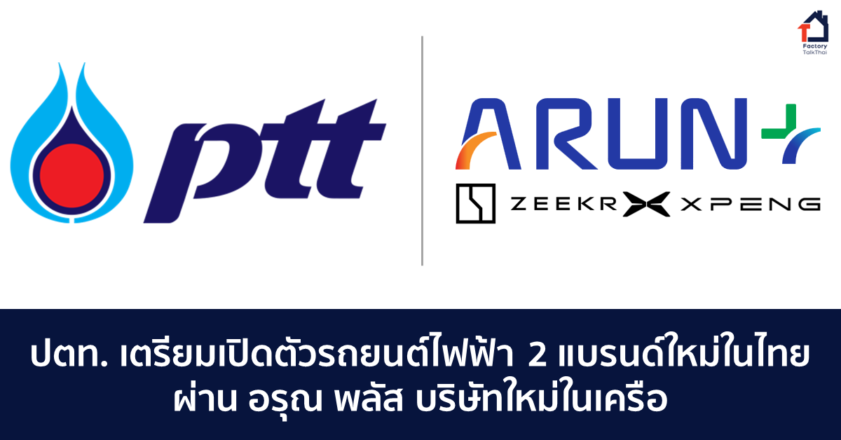 บริษัท ปตท. จำกัด (มหาชน) กลุ่มบริษัทน้ำมันและก๊าซแห่งชาติ ไฟเขียวให้บริษัท อรุณ พลัส จำกัด ซึ่งเป็นบริษัทในเครือที่ถือหุ้น 100% จัดตั้งบริษัทใหม่ 2 แห่งเพื่อขายรถยนต์ไฟฟ้า (EV) สองยี่ห้อ ได้แก่ ZEEKR และ XPENG ในประเทศไทย