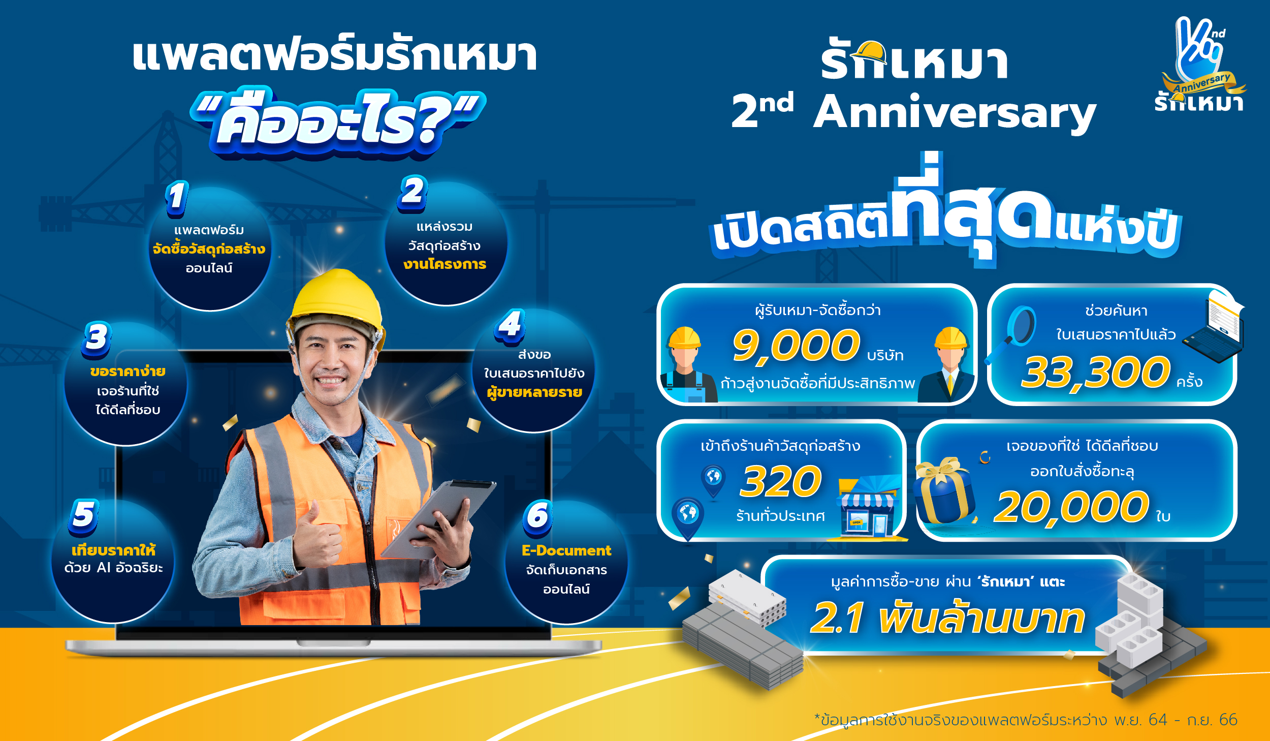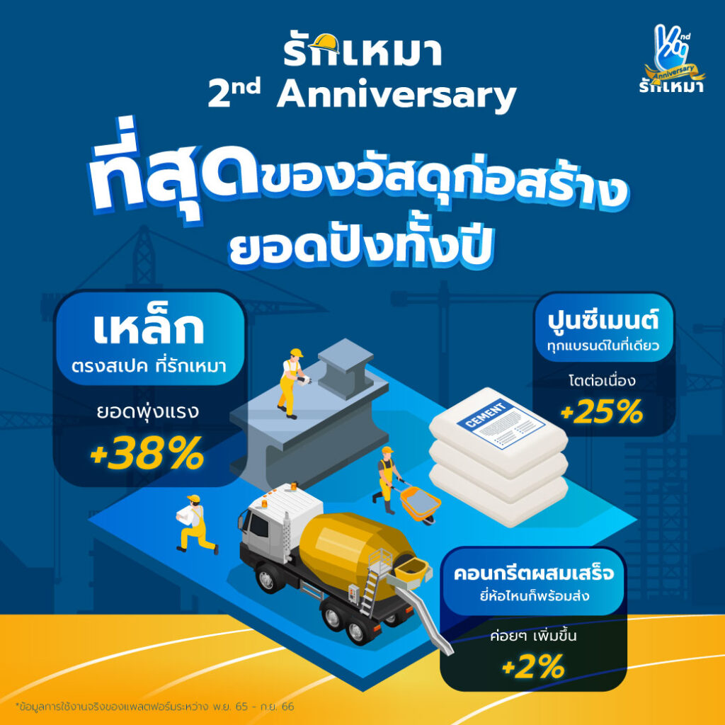 ‘แพลตฟอร์มรักเหมา’ ฉลองครบ 2 ปี เดินหน้าขยายเครือข่ายร้านค้า พัฒนาระบบเพื่อผู้รับเหมาทั่วประเทศ