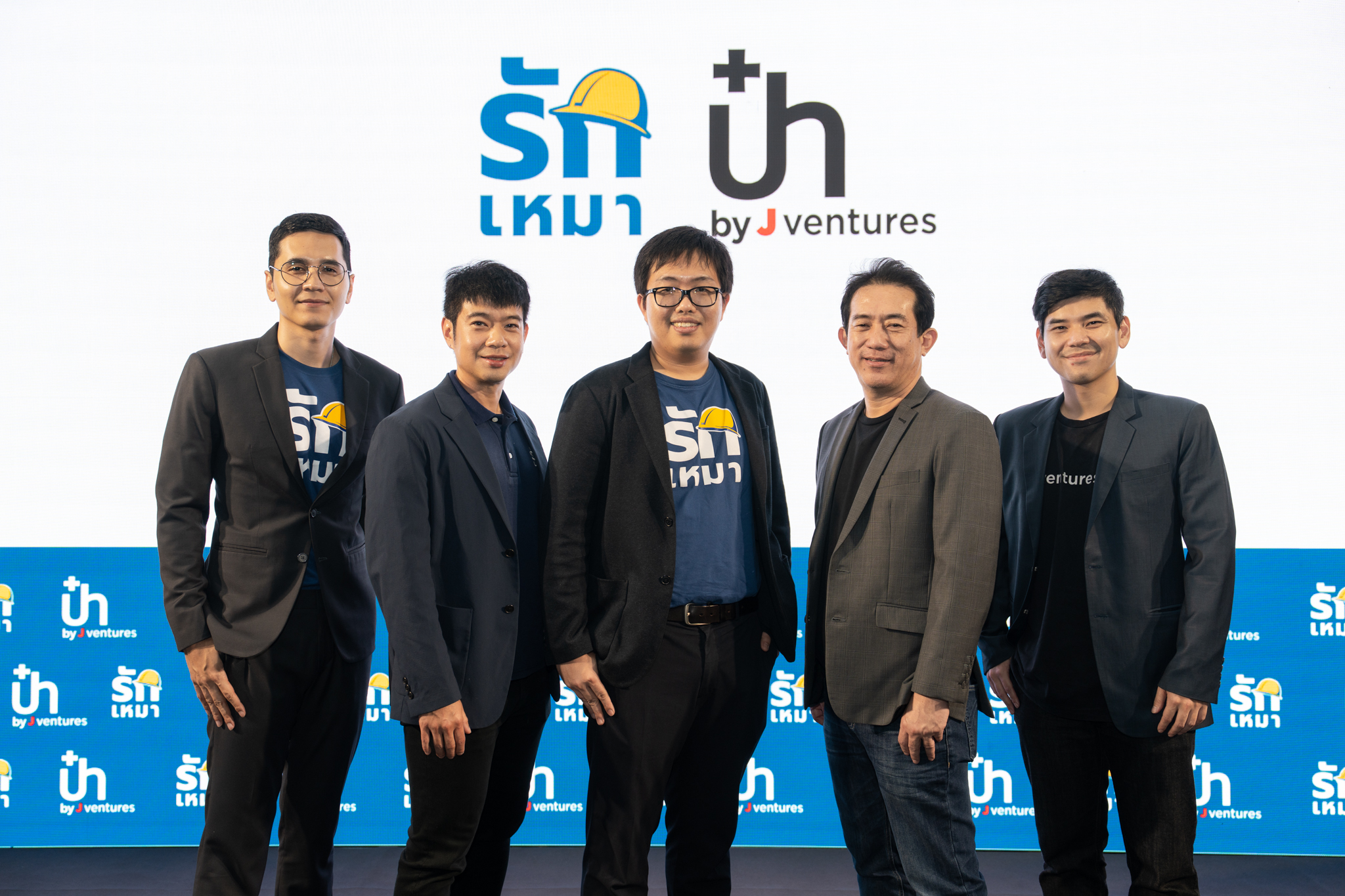 เรียงจากซ้ายไปขวา : คุณวชิรวิทย์ จริตงาม Senior Strategic X Rakmao Platform, คุณไตรพจน์ อัครเอกฒาลิน Rakmao Account Executive Team Lead, คุณณัฏฐ์ จิรนิรันดร์กุล Co-Founder Rakmao Platform, คุณธนวัฒน์ เลิศวัฒนารักษ์ CEO of J Ventures และ คุณลภัสวัฒน์  ไชยภพธนัชพร Head of Fintech – J Ventures