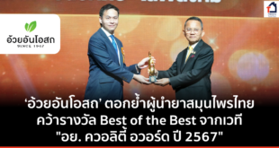 Read More »‘อ้วยอันโอสถ’ ตอกย้ำผู้นำยาสมุนไพรไทย คว้ารางวัล Best of the Best จากเวที “อย. ควอลิตี้ อวอร์ด ปี 2567”