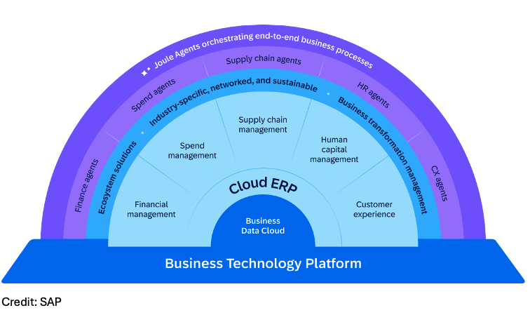 แม้ในอดีตที่ผ่านมา SAP จะมุ่งเน้นการนำเสนอโซลูชันด้านระบบ ERP เป็นหลัก แต่ในปี 2025 นี้ วิสัยทัศน์ของ SAP ได้ก้าวล้ำไปไกลยิ่งกว่าเพียงแค่ระบบ ERP แล้ว เพราะในการบริหารจัดการธุรกิจให้มีขีดความสามารถในการแข่งขัน, ลดค่าใช้จ่ายได้อย่างมีประสิทธิภาพ และเปิดรับต่อการใช้ AI ในธุรกิจให้ประสบความสำเร็จนั้น ธุรกิจจะต้องมองให้ไกลกว่าเพียงการใช้ ERP ในการบริหารธุรกิจเท่านั้น