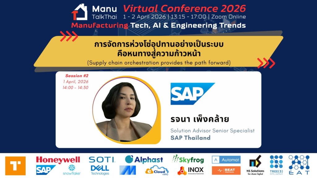 สำหรับท่านที่พลาดโอกาสเข้าร่วมงานครั้งนี้ ManuTalkThai ได้เผยแพร่วิดีโอย้อนหลังในแต่ละเซสชันที่เกิดขึ้นในงานสัมมนาออนไลน์ MTT Virtual Conference 2026 ภายใต้ธีม Manufacturing Tech, AI & Engineering Trends ที่ถูกจัดขึ้นเมื่อวันที่ 1-2 เมษายน 2026 กับ 14 หัวข้อการบรรยายจากเหล่าแบรนด์และผู้เชี่ยวชาญจากบริษัทฯ ชั้นนำในภาคอุตสาหกรรม