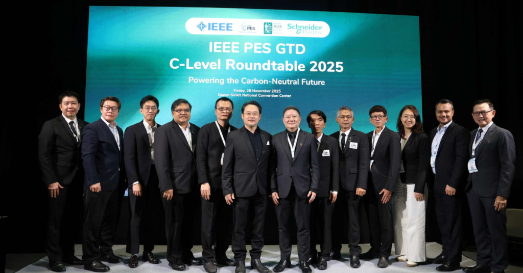 C-Level Roundtable 2025 ครั้งนี้ จัดขึ้นภายในงาน IEEE PES GTD Asia 2025 ที่ผ่านมา โดยมีผู้บริหารระดับสูงจากบริษัทชั้นนำด้านพลังงาน ด้านเทคโนโลยี รวมถึงหน่วยงานจากภาครัฐที่เกี่ยวข้อง เข้าร่วมแลกเปลี่ยนมุมมองและข้อเสนอแนะเชิงกลยุทธ์ ภายใต้หัวข้อ “Powering the Cabon-Neutral Future” เพื่อหาแนวทางในการรับมือกับความท้าทายด้านพลังงานและเพื่อขับเคลื่อนไทยสู่เป้าหมาย Net Zero ในปี 2050