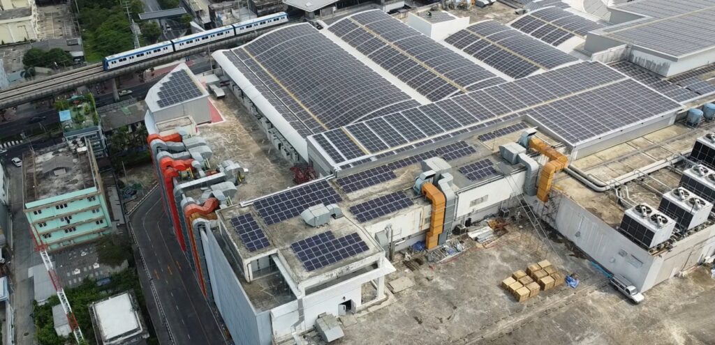 กรุงเทพฯ 5 ตุลาคม พ.ศ. 2566 – พลังงานแสงอาทิตย์ คือพลังงานที่ธรรมชาติมอบให้มนุษย์สามารถใช้ประโยชน์ได้อย่างแทบไม่มีที่สิ้นสุด ในช่วงเวลาที่หลายฝ่ายให้ความสำคัญกับอนาคตสีเขียวและแหล่งพลังงานทดแทนมากขึ้น ทำให้หลายองค์กรในหลากอุตสาหกรรมหันมาเลือกใช้เทคโนโลยี “โซลาร์เซลล์” เพื่อแปลงพลังงานแสงอาทิตย์ให้เป็นพลังงานไฟฟ้า ทดแทนการใช้พลังงานจากโรงไฟฟ้าในรูปแบบเดิม ที่เริ่มกลายเป็นต้นทุนของการดำเนินการที่สูงขึ้นอย่างไม่น่าเชื่อ สิ่งนี้ถือเป็นปัจจัยสำคัญของการประกอบกิจการแทบทุกรูปแบบ ทั้งธุรกิจอุตสาหกรรมการผลิต ธุรกิจด้านการบริการต่าง ๆ ไปจนถึงธุรกิจประเภทศูนย์สรรพสินค้าที่ใช้ต้องใช้ไฟฟ้าปริมาณมากในแต่ละวัน เพื่อตอบสนองความต้องการของลูกค้าที่เข้ามาจับจ่ายใช้บริการในสถานที่ตั้งแต่เช้าจนค่ำ เทคโนโลยีด้านพลังงานดิจิทัลจึงกลายมาเป็นจุดเปลี่ยนที่องค์กรหันมาให้ความสำคัญและลงทุนติดตั้ง เพื่อประยุกต์ใช้พลังงานทดแทนอย่างเต็มที่ โดยหวังให้อนาคตของทั้งองค์กรและคุณภาพชีวิตของประชากรไทยมีความความยั่งยืนไปด้วยกัน