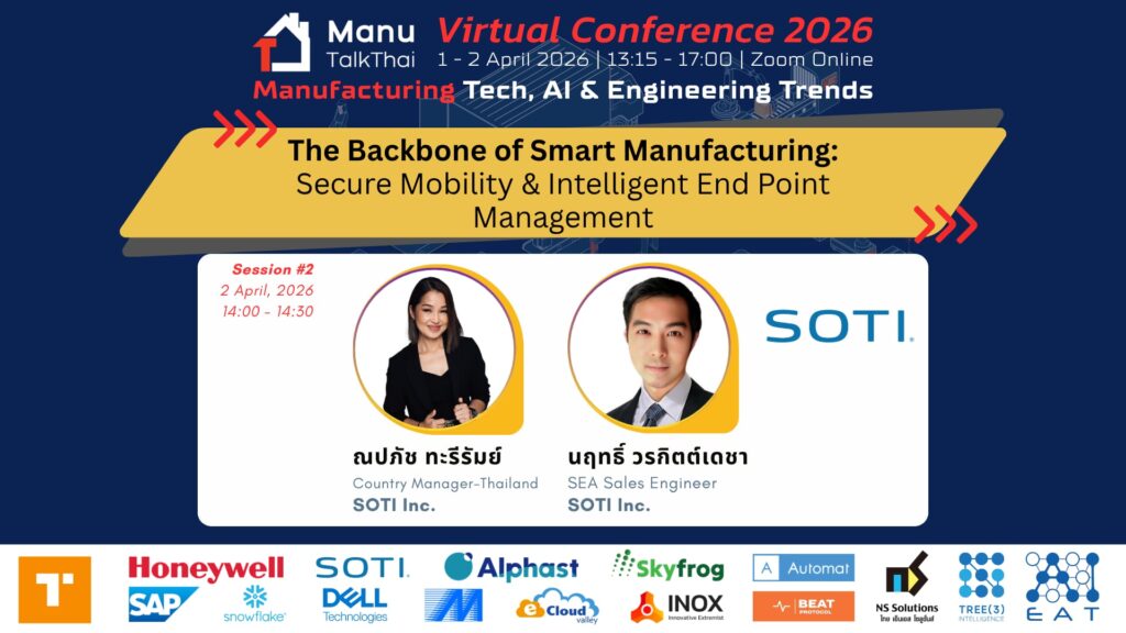 สำหรับท่านที่พลาดโอกาสเข้าร่วมงานครั้งนี้ ManuTalkThai ได้เผยแพร่วิดีโอย้อนหลังในแต่ละเซสชันที่เกิดขึ้นในงานสัมมนาออนไลน์ MTT Virtual Conference 2026 ภายใต้ธีม Manufacturing Tech, AI & Engineering Trends ที่ถูกจัดขึ้นเมื่อวันที่ 1-2 เมษายน 2026 กับ 14 หัวข้อการบรรยายจากเหล่าแบรนด์และผู้เชี่ยวชาญจากบริษัทฯ ชั้นนำในภาคอุตสาหกรรม