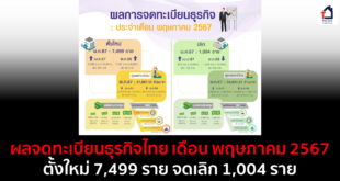 กรมพัฒนาธุรกิจการค้า เปิดเผยสถิติจดทะเบียนตั้งใหม่ช่วงกลางไตรมาส 2 ประจำเดือนพฤษภาคม 2567 ตั้งใหม่ 7,499 ราย เพิ่มขึ้นจากเดือนก่อนหน้า 14.84% จดทะเบียนเลิก 1,004 ราย น้อยลงจาก ช่วงเดียวกันของปีที่แล้ว ทั้งนี้ ภายหลังจากการสิ้นสุดการรับงบการเงินประจำปี 2566 ของนิติบุคคลกลุ่มที่มีรอบปีบัญชี 31 ธันวาคม 2566 พบส่งงบการเงินตรงเวลาแล้ว 86.6% เหลืออีก 13.4% ที่ยังไม่ได้นำส่งและ มีโทษทางกฎหมาย สำหรับการวิเคราะห์งบการเงินที่ยื่นต่อกรมฯ พบว่า ธุรกิจมีรายได้กว่า 57.86 ล้านล้านบาท และกำไรกว่า 52.82 ล้านล้านบาท แบ่งเป็น ภาคการผลิต ขายปลีก/ส่ง และบริการ และธุรกิจที่โกยทรัพย์มากที่สุด 10 อันดับ อาทิ ผลิตภัณฑ์ที่ได้จากโรงกลั่นปิโตรเลี่ยม เครื่องประดับ ยานยนต์ ธนาคาร และเชื้อเพลิง ด้านการวิเคราะห์รายธุรกิจพบว่า …
