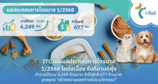 บริษัท ไอ-เทล คอร์ปอเรชั่น จำกัด (มหาชน) หรือ ITC รายงานผลประกอบการไตรมาสแรกของปี 2568 ด้วยรายได้จากการขายรวม 4,249 ล้านบาท เติบโต 5.5 เปอร์เซ็นต์ จากช่วงเดียวกันของปีก่อนหน้า ซึ่งเป็นผลมาจากปริมาณการขายที่เติบโต 13.2 เปอร์เซ็นต์ ขับเคลื่อนโดยคำสั่งซื้อจากกลุ่มลูกค้าผู้นำเข้าแบรนด์อาหารสัตว์เลี้ยงระดับโลก อย่างไรก็ดี การเติบโตของรายได้ของบริษัทฯ ในไตรมาสแรกของทุกปีจะเป็นช่วงที่ขยายตัวเพียงเล็กน้อย ส่วนในรอบนี้ได้รับผลกระทบบางส่วนจากการขายสินค้ากลุ่มพรีเมียมที่ลดลงเมื่อเทียบกับช่วงเดียวกันของปีก่อนหน้า อันเนื่องมาจากสภาวะเศรษฐกิจ ขณะที่้อัตรากำไรขั้นต้นอยู่ที่ 24.1 เปอร์เซ็นต์ จากการบริหารต้นทุนที่มีประสิทธิภาพ ตลอดจนการปรับสัดส่วนการผลิตในกลุ่มสินค้าพรีเมียม เพื่อให้สอดคล้องกับความต้องการของผู้บริโภคได้อย่างเหมาะสม ส่งผลให้บริษัทฯ มีกำไรสุทธิในไตรมาสนี้อยู่ที่ 677 ล้านบาท