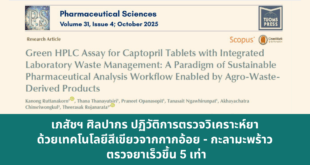 ในยุคที่โลกมุ่งสู่การพัฒนาอย่างยั่งยืนและลดผลกระทบต่อสิ่งแวดล้อม คณะเภสัชศาสตร์ มหาวิทยาลัยศิลปากรสร้างนวัตกรรมใหม่ที่เปลี่ยน “ของเหลือจากเกษตรกรรมไทย” ให้กลายเป็นหัวใจสำคัญของการตรวจวิเคราะห์คุณภาพยาโดยประสบความสำเร็จในการพัฒนาระบบตรวจวิเคราะห์ยารักษาโรคหัวใจและความดันโลหิตสูง “Captopril” ด้วยกระบวนการที่เป็นมิตรต่อสิ่งแวดล้อมอย่างครบวงจร ซึ่งไม่เพียงช่วยลด การใช้สารเคมีอันตราย แต่ยังลดระยะเวลาการตรวจวิเคราะห์จากเดิม 14 นาที เหลือเพียง 2.5 นาที พร้อมวางรากฐานต้นแบบ “ห้องปฏิบัติการสีเขียว” เพื่อความปลอดภัยของบุคลากรและความยั่งยืนในระยะยาว