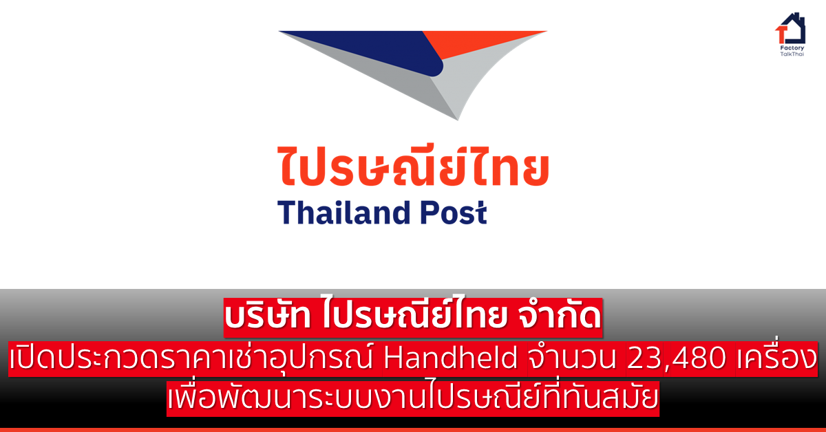 ด้วย บริษัท ไปรษณีย์ไทย จำกัด มุ่งเน้นยกระดับพัฒนาระบบงานไปรษณีย์ให้ทันสมัย ด้วยแผนงานการประกวดราคาเช่าอุปกรณ์ Handheld จำนวน 23,480 เครื่อง มูลค่าราคากลาง 640,651,800 บาท โดยวิธีประกวดราคาเพื่อการพาณิชย์ ซึ่งกำหนดให้ผู้ที่สนใจนำซองยื่นต่อเจ้าหน้าที่รับซองประกวดราคาที่ ฝ่ายจัดหาและพัสดุ ชั้น 1 อาคารบริหาร บริษัท ไปรษณีย์ไทย จำกัด ในวันที่ 30 กันยายน 2567