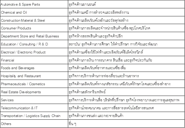 กลุ่มธุรกิจที่ทำการประเมิน ครอบคลุม