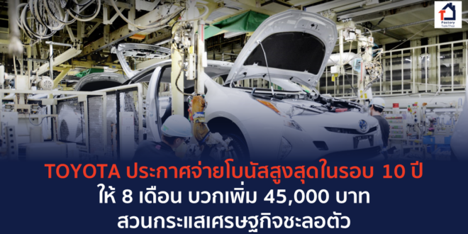 Toyota ประกาศจ่ายโบนัสสูงสุดในรอบ 10 ปี ให้ 8 เดือน บวกเพิ่ม 45,000 บาท สวนกระแสเศรษฐกิจชะลอตัว