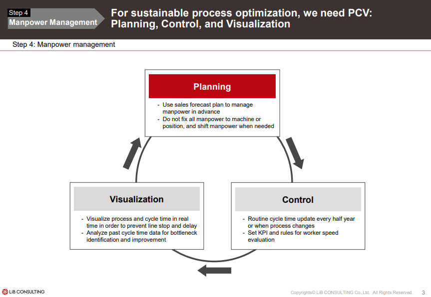 4. Manpower management ดำเนินการปรับปรุง Workflow ตามแนวทางที่กำหนดไว้ โดยเน้นการบริหารจัดการกำลังคนให้สมดุลและสอดคล้องไปกับกระบวนการทำงานใหม่ขององค์กร