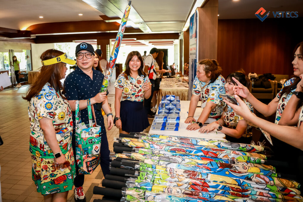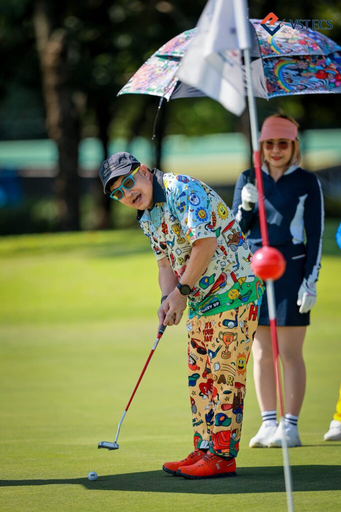 “เราสนับสนุนให้ผู้บริหารของ VST ECS ออกรอบตีกอล์ฟ เพื่อสามารถร่วมกิจกรรมสันทนาการกับลูกค้าของเราได้ กอล์ฟคือจุดเชื่อมโยงธุรกิจที่ยอดเยี่ยมและได้รับการยอมรับในวงกว้าง เราจึงมีทีมงานที่ช่วยกันระดมสมองเพื่อวางแผนการจัดงานแข่งขันกอล์ฟได้ตามวัตถุประสงค์ เพราะทุกคนเข้าใจในกีฬากอล์ฟอย่างลึกซึ้ง ทำให้เราไม่ต้องจ้าง Organizer” คุณสมศักดิ์ เพ็ชรทวีพรเดช CEO แห่ง VST ECS ได้เล่าประวัติของงาน VST ECS Golf Charity 2023 และกล่าวเฉลยกติกาที่เน้นดวงมากกว่าฝีมือ “เราต้องการสร้าง Fair Play ให้กับการแข่งขันกอล์ฟ ด้วยกฏกติกาการคิดคะแนนแบบ 36 System ที่คิดค่าแต้มต่อ handicap ตามระดับฝีมือ แต่จะมีการจับฉลากเอาออกทั้งหมด 6 หลุม เท่ากับว่า 6 หลุมนั้น จะไม่ถูกนำมาคำนวณคะแนน โอกาสเป็นของทุกคนนักกอล์ฟที่ฝีมือดีตีหลายเบอร์ดี้คะแนนส่วนนี้อาจจะหายไปก็ได้ หรือนักกอล์ฟมือใหม่ตีออกโบกี้ ดับเบิ้ลโบกี้ เป็นคะแนนเฉลี่ยตามฝีมือ อาจจะมีโชคช่วยจากกติกานี้ก็ได้ เราต้องการให้ทุกท่านที่เข้าร่วมได้รับความสนุกสนานและลุ้นดวงเฮง ๆ ร่วมกันหลังส่งสกอร์การ์ด”